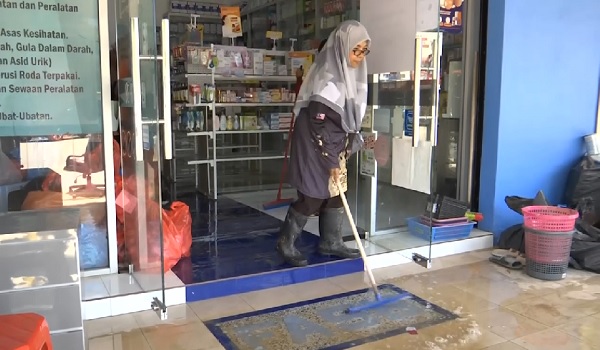 Keadaan salah sebuah premis di Alor Gajah,Melaka yang terjejas banjir baru-baru ini