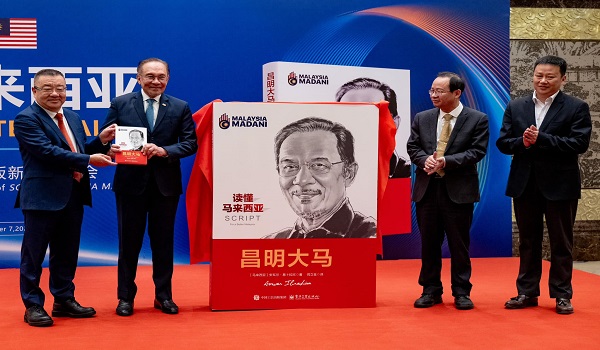 Di penghujung syarahan,Anwar melancarkan Buku SCRIPT MADANI yang diterbitkan semula dalam bahasa Mandarin,bertujuan untuk memperkenalkan gagasan MADANI ke peringkat antarabangsa.
