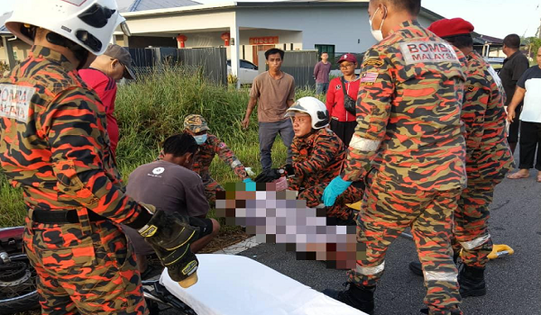 Pasukan dari Balai Bomba dan Penyelamat (BBP) Siburan yang tiba di lokasi kira-kira 12 minit kemudian mendapati kemalangan melibatkan sebuah motosikal dengan sebuah kereta jenis sedan.
