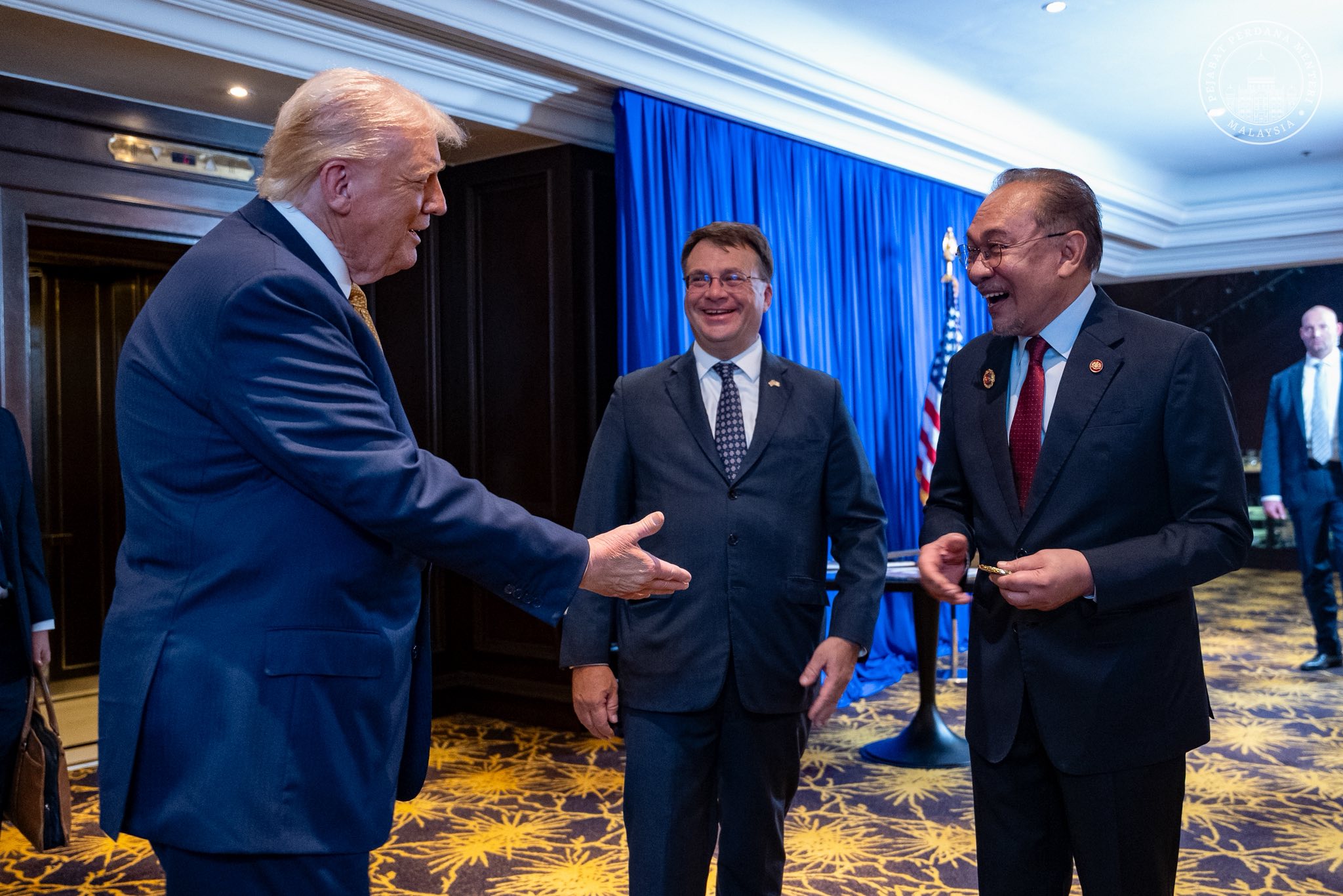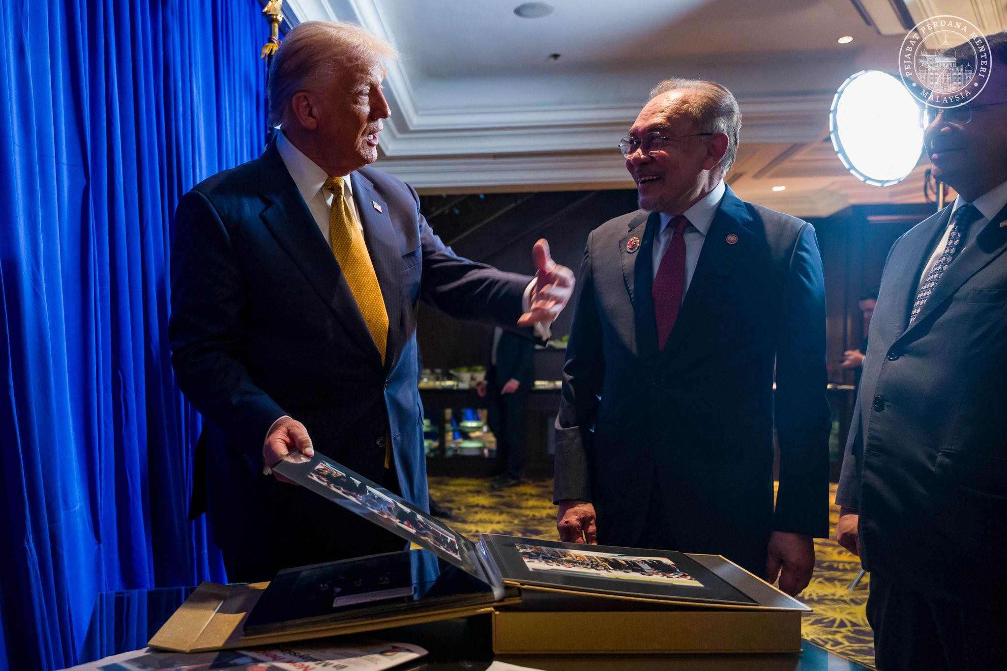 Pertemuan singkat penuh bermakna antara Presiden AS Donald Trump dan Perdana Menteri Datuk Seri Anwar Ibrahim hari ini/Foto Facebook PMO